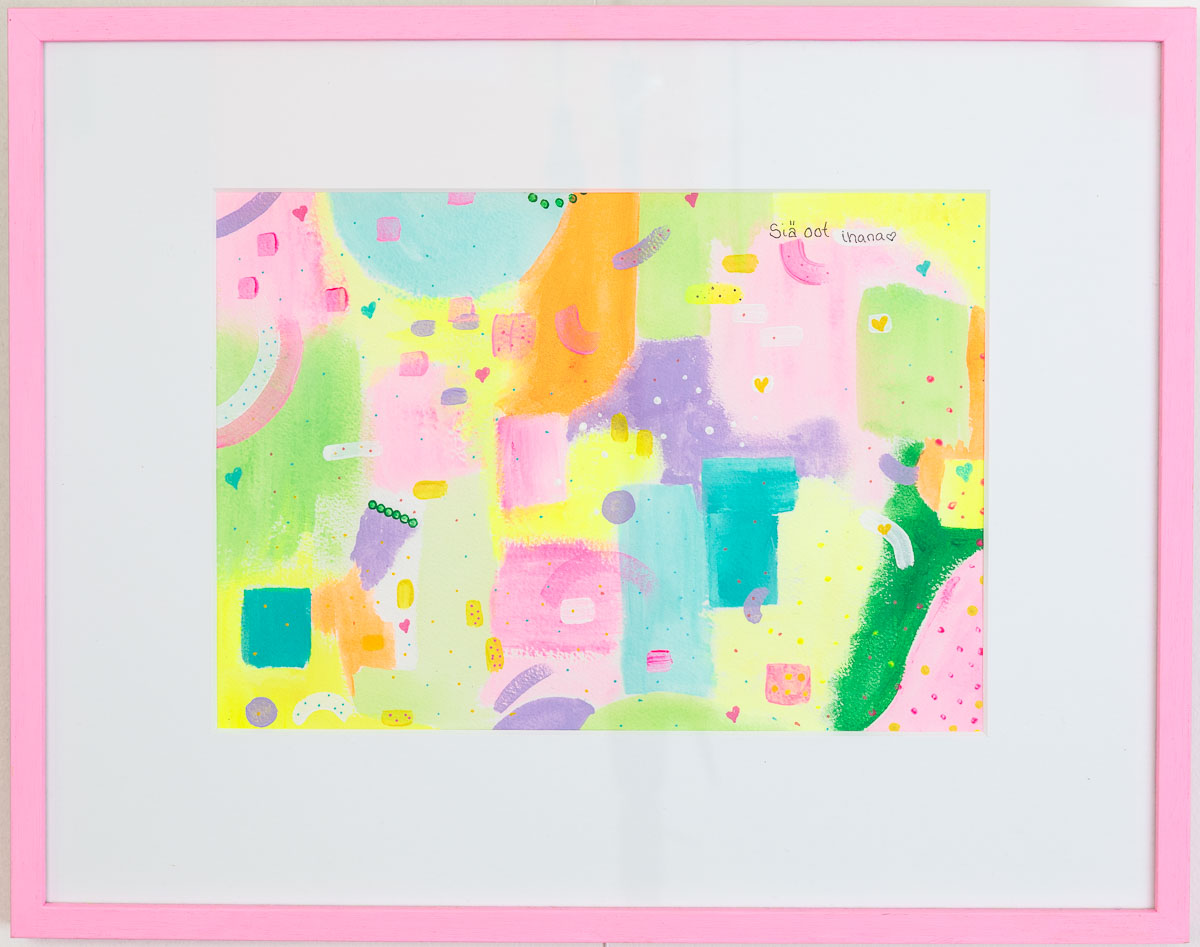 Tämä teos on 4.-30.10 HUPSIS HUPSIS HUPSIS näyttelyssä Take me home galleriassa Helsingissä . Osoite on Kauppiaankatu 8. Avoinna sopimuksen mukaan tai katso aukioloajat Takemehome istagramista. Jos haluat hakea teoksen galleriasta näyttelyn aikana valitse nouto, jos et  niin valitse normaali lähetys, silloin teos lähetetään näyttelyn jälkeen viikolla 45.